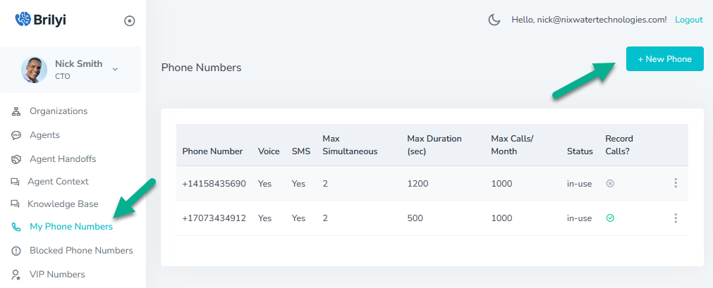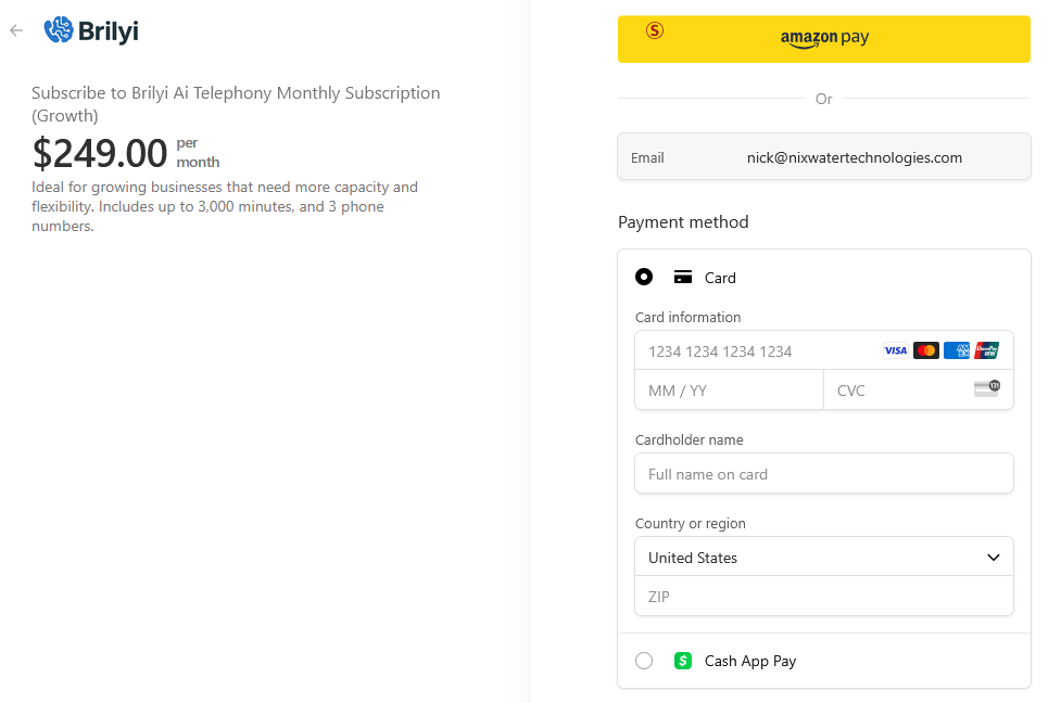 Establish your Brilyi account, choose the right plan for your needs, and gain access to our full suite of AI-powered tools. - Phone Number Provisioning