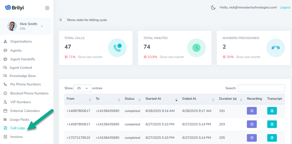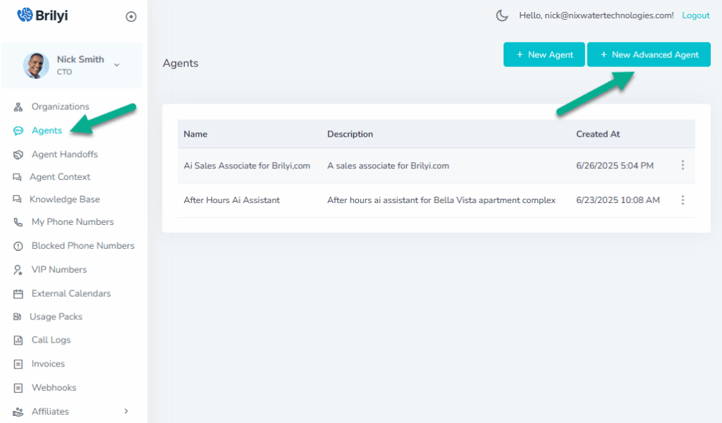 Welcome to the Brilyi User Guide, your step-by-step companion for harnessing the power of AI voice agents to transform how you connect with customers, schedule appointments, and automate everyday workflows. Whether you’re just getting started or looking to unlock advanced features, this guide will walk you through: